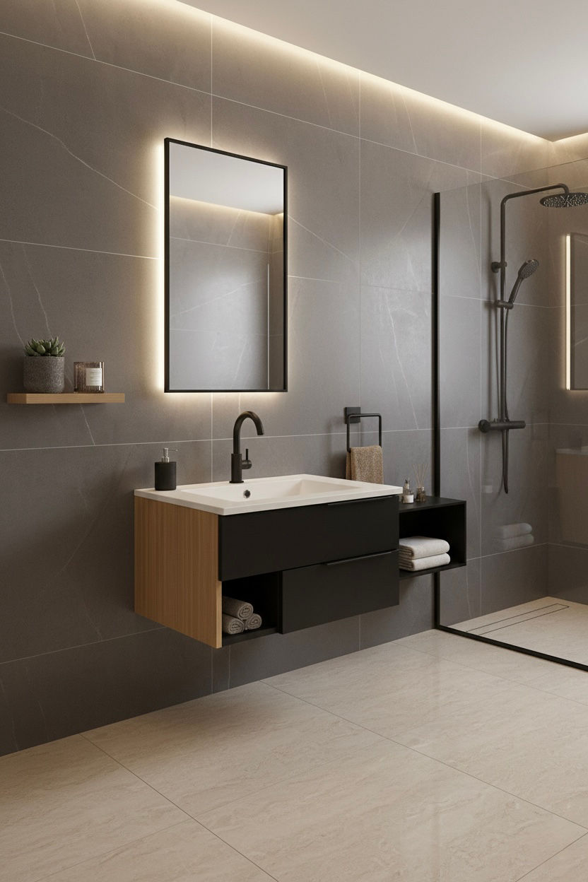 وحدة موبيليا بورديوم 80 سم اسود D811 بحوض مستورد