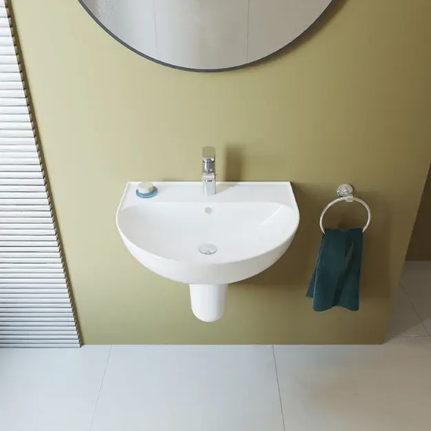 حوض روزيتا 45 سم بعامود معلق ابيض من سانيبيور